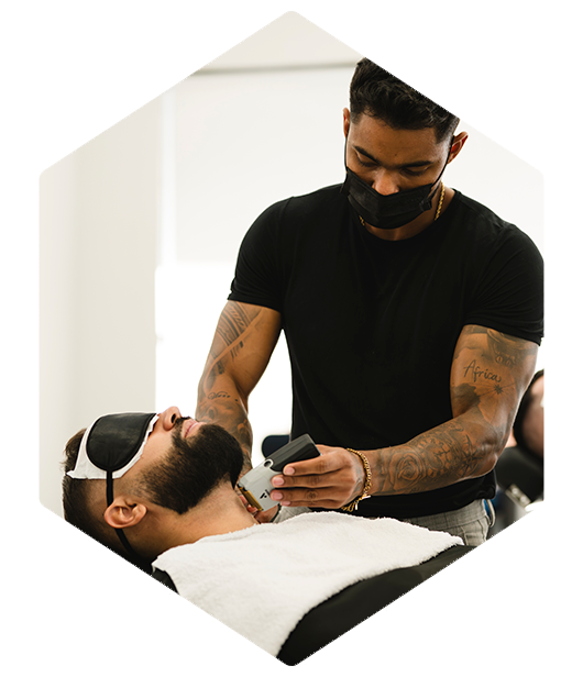 Procedimento completo de barbear com toalha quente e massagem relaxante